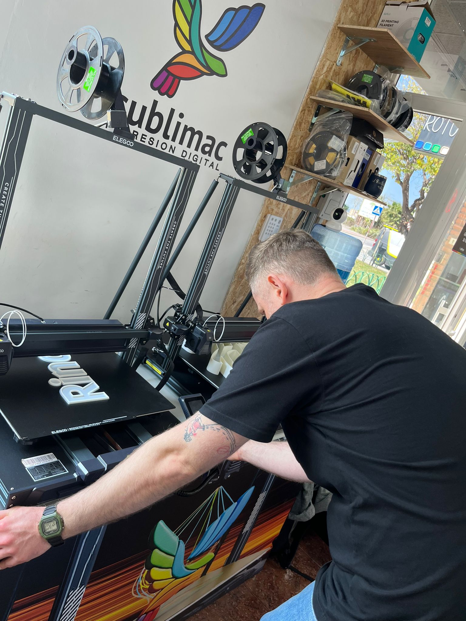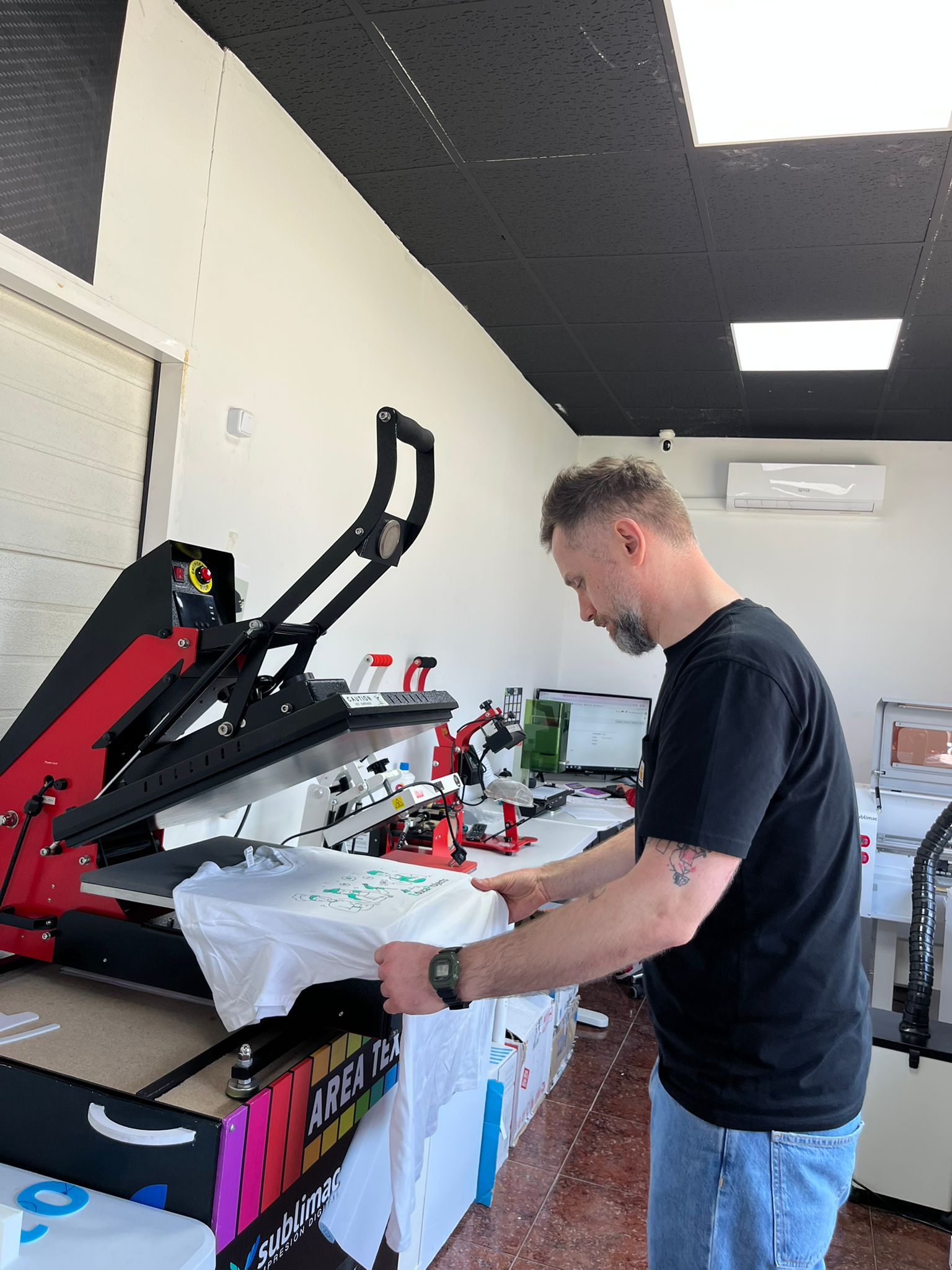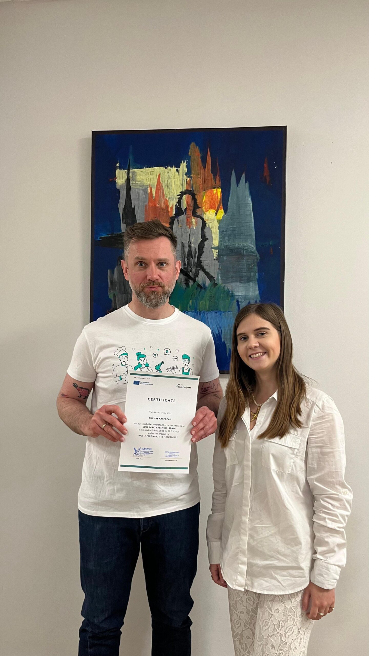 P. Michał Kasprzyk – nauczyciel przedmiotów zawodowych graficznych – obserwował system działania hiszpańskiej firmy graficznej, od przyjęcia zlecenia od klienta, po wydanie gotowego produktu. Miał możliwość nie tylko przyglądania się pracy nowoczesnych maszyn: plotera wielkoformatowego Mimaki, prasy termotransferowej Siser, grawerki i wycinarki laserowej xTool, plotera laserowego xTool, czy drukarki 3D Elegoo, ale również ich obsługi.