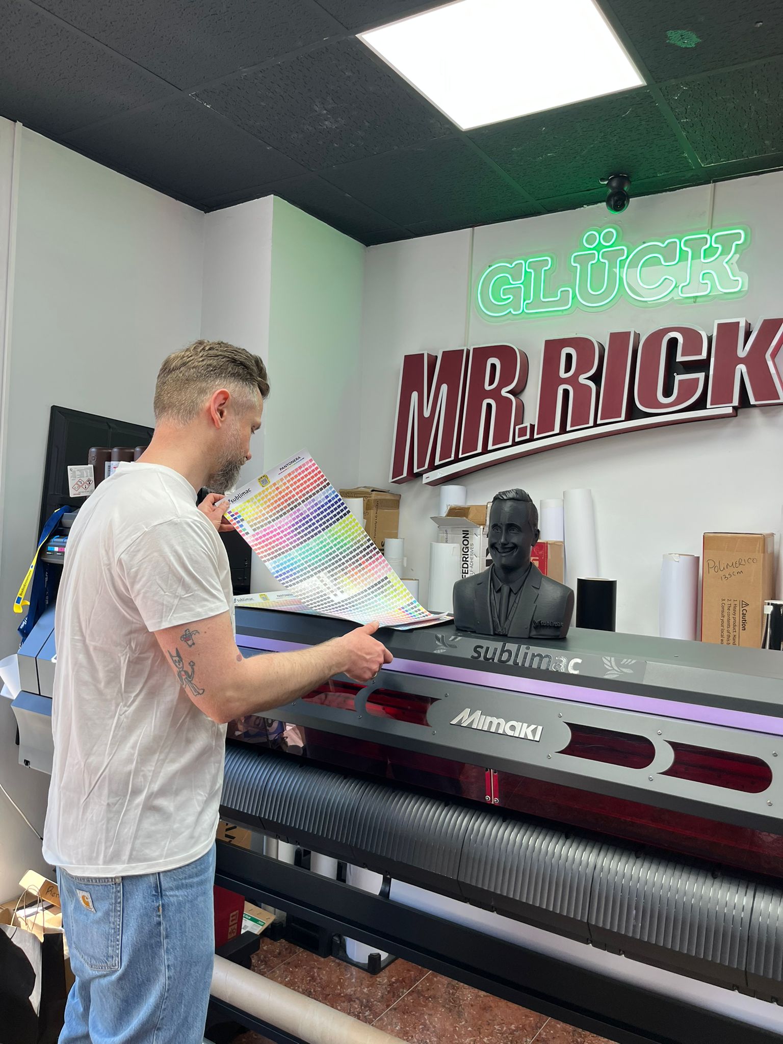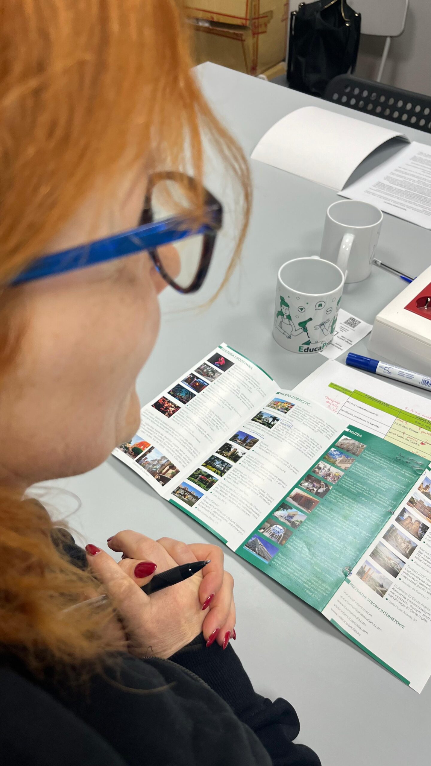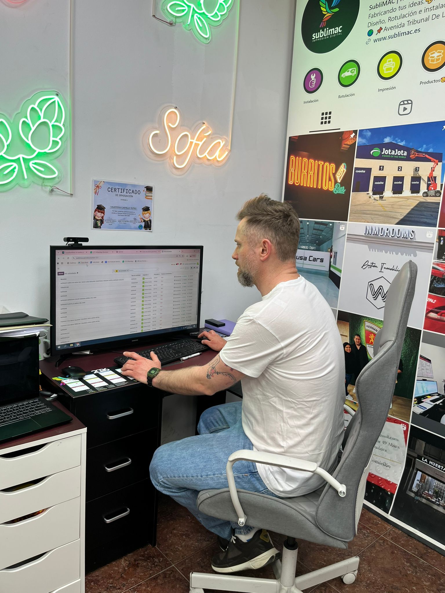 P. Michał Kasprzyk – nauczyciel przedmiotów zawodowych graficznych – obserwował system działania hiszpańskiej firmy graficznej, od przyjęcia zlecenia od klienta, po wydanie gotowego produktu. Miał możliwość nie tylko przyglądania się pracy nowoczesnych maszyn: plotera wielkoformatowego Mimaki, prasy termotransferowej Siser, grawerki i wycinarki laserowej xTool, plotera laserowego xTool, czy drukarki 3D Elegoo, ale również ich obsługi.